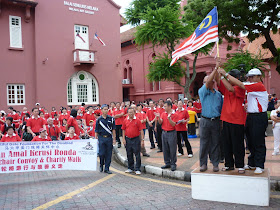 当天有许多教会弟兄姐妹踊跃出席,同时马六甲区少年军也一同参与。但是,当天天气乌云密布,弟兄姐妹非常担心会下雨,经过教区长带领我们一同祷告,但上帝奇妙的保守,让整个活动能够顺利进行。此义走活动是在开幕人哈山阿都拉曼州议员与郑德华市议员、马 六甲历史城市政局秘书阿兹米主持挥旗礼后,正式拉开序幕。数十名坐着轮椅或手持拐杖的残障人士,在一班热心慈善的民众陪同下,浩浩荡荡从 红屋区(圣公会教会)出发,并向古城门的终点前进。